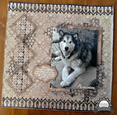 To create this layout I began by die cutting the Simone's style border and the Jocund Julie dies...from Coredinations Cardstock....